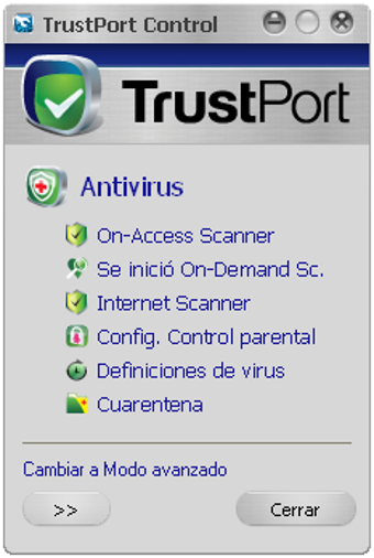TrustPort USB Antivirus es un software de seguridad diseñado para proteger dispositivos USB y sistemas Windows de amenazas y malware. Esta herramienta, que se presenta en una versión de prueba, permite a los usuarios escanear unidades externas y prevenir la propagación de virus a través de dispositivos móviles. Su interfaz es intuitiva, facilitando la navegación y el acceso a las funciones esenciales de protección.